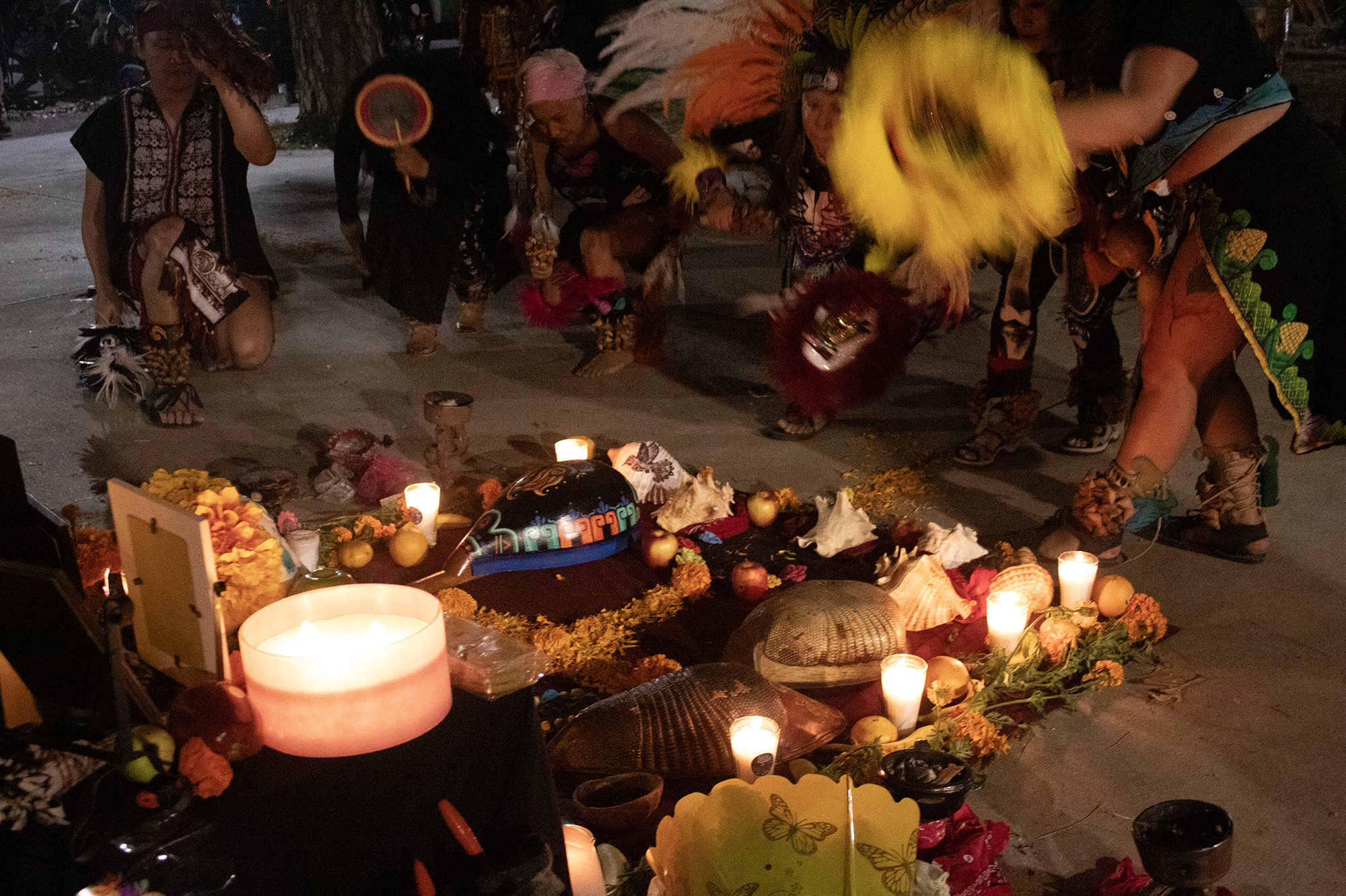 This project documents various traditional dances from different cultures across the lands we know today as Mexico. Communities that migrated to Los Angeles, both at will or due to displacement, openly express their cultural pride through dance movement. In these photographs, the traditional regalia shines, as it represents the empowerment the dancers carry with them not only when they dance, but in their everyday lives. Dance becomes a form of resistance and remembrance for these communities.